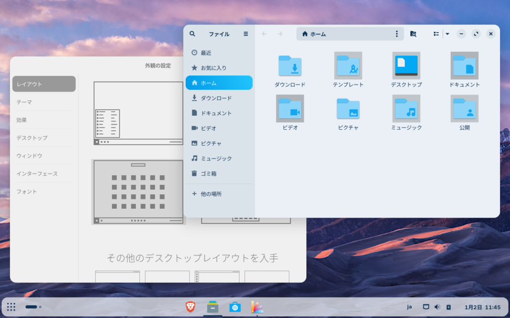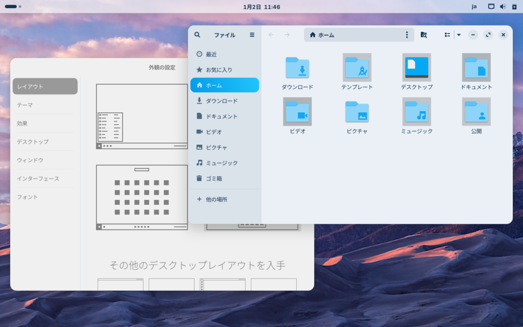 いずれもデスクトップ環境はGnomeですが,カスタマイズされており,デフォルトUIはWindowsに近い雰囲気です。