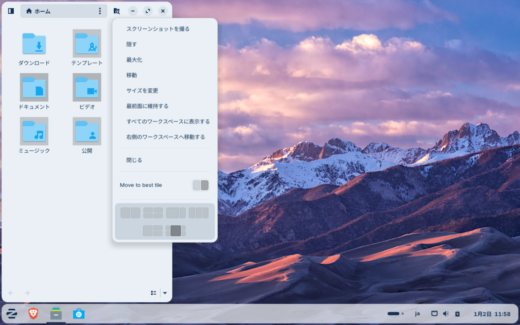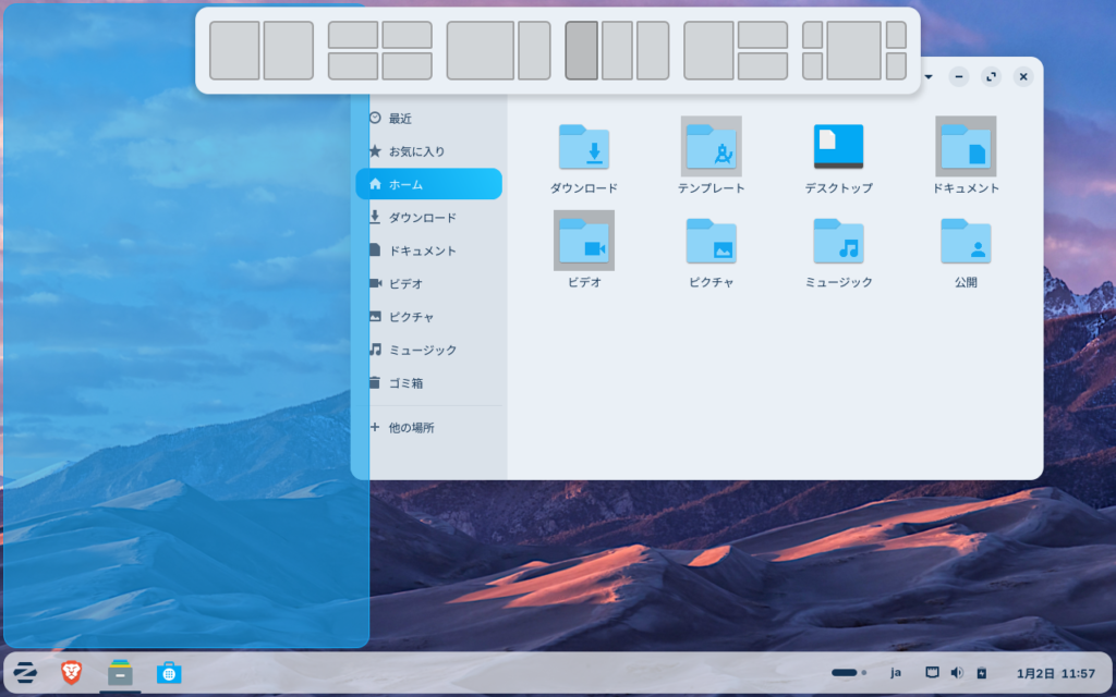 タイリングサポートといいUIの丸みといい,Windows結構意識してますよね。そのぶんWindowsからの移行はしやすくなっていると思います。