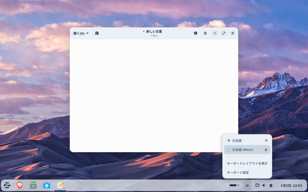 日本語表示もデフォルトでできますが,最初だけ入力メソッドを変更する必要があります。