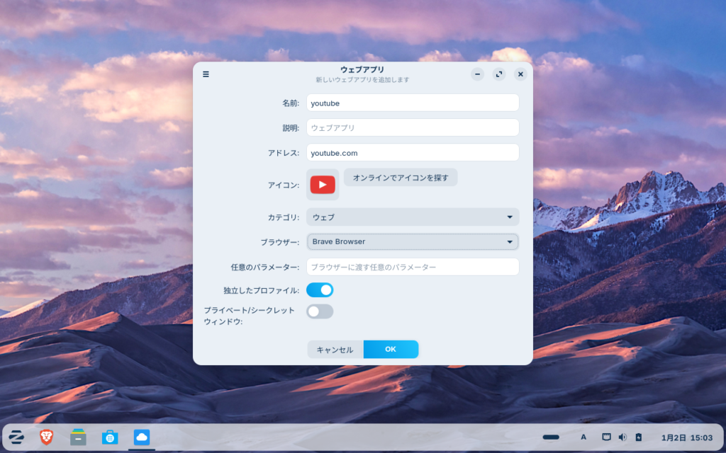 保存すると,確かにデスクトップアプリとして起動できるようになっています。