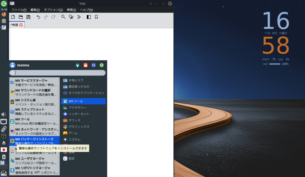 まずは「MXツール」のカテゴリにある「MXパッケージインストーラ」を起動します。