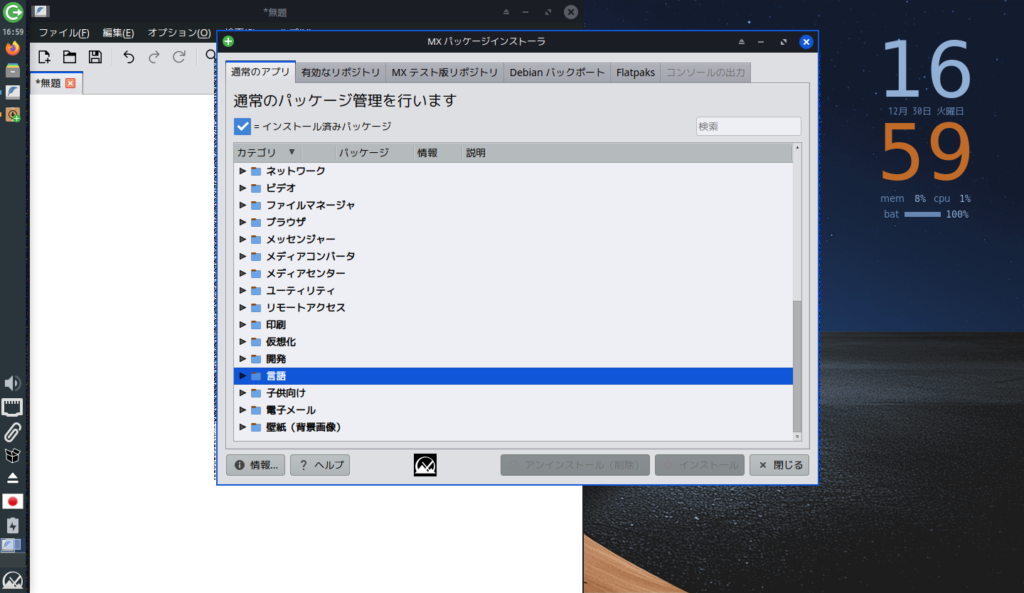 相変わらずXfceにしては重い中量級OSという感じですね。