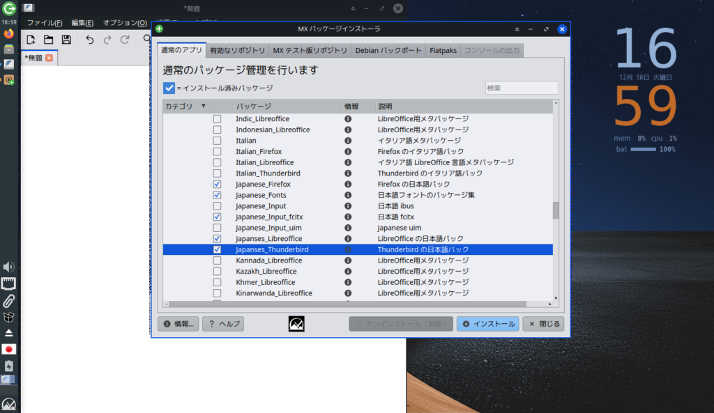 なお,英語表示でドヤりたいという人は「Japanese_Input_Fcitx」さえ入れておけば日本語入力だけはできるようになります。ほか4つは日本語表示を補強するパッケージです。