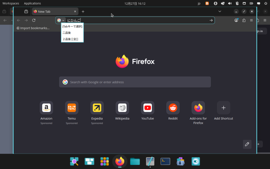 デスクトップ環境のcosmicは基本的にマウス操作を前提として作られていますが,i3やwaylandのようなタイル型ウィンドウマネージャーみたくキーボードでウィンドウ操作ができる機能があります。